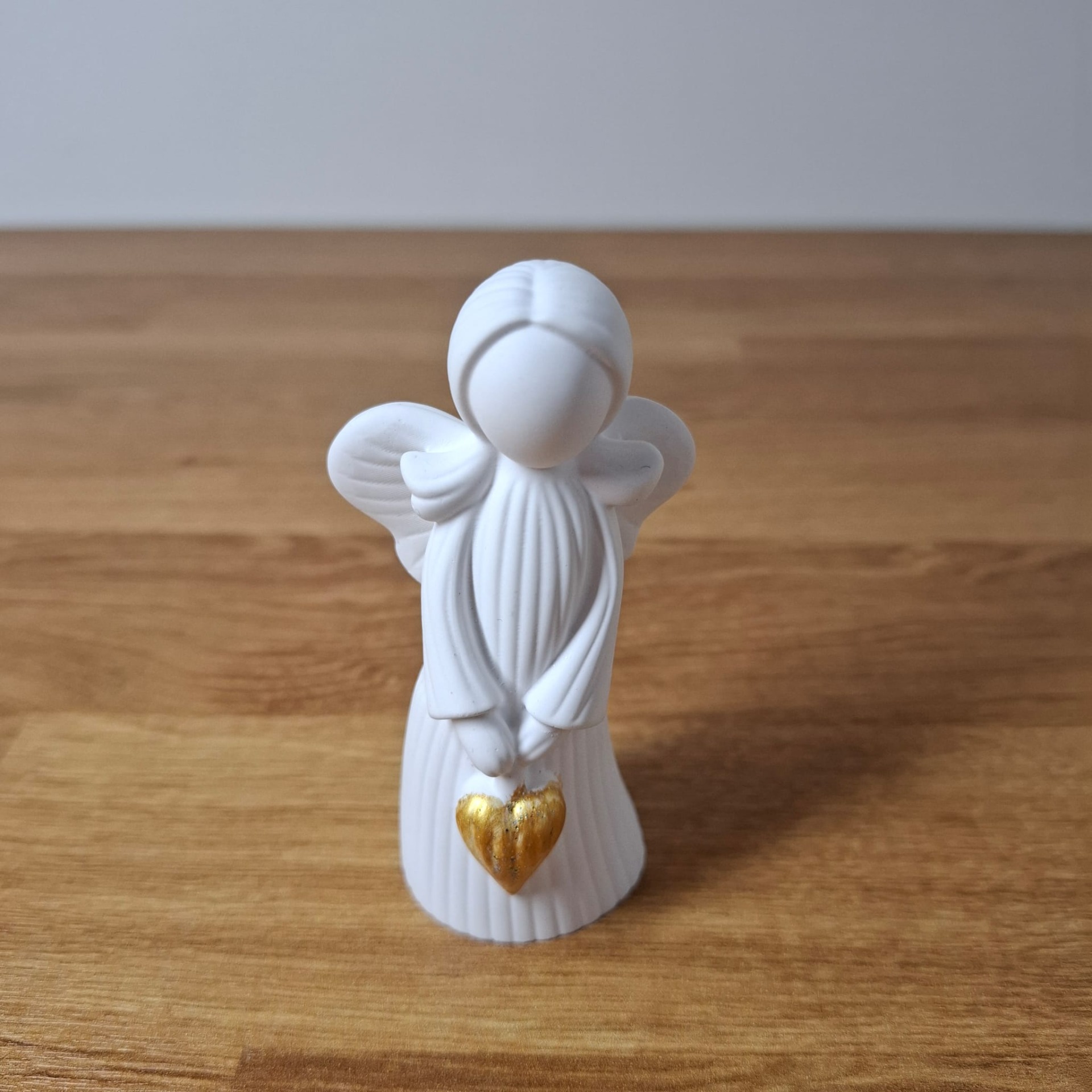 Jemná dekorace s čistým a klidným výrazem. Anděl je ručně odlévaný z keraflotu a doplněný srdcem, které symbolizuje lásku, ochranu a blízkost.