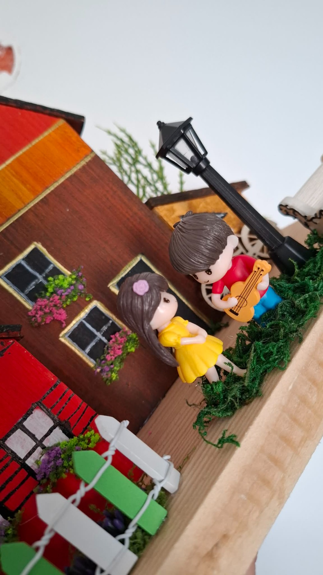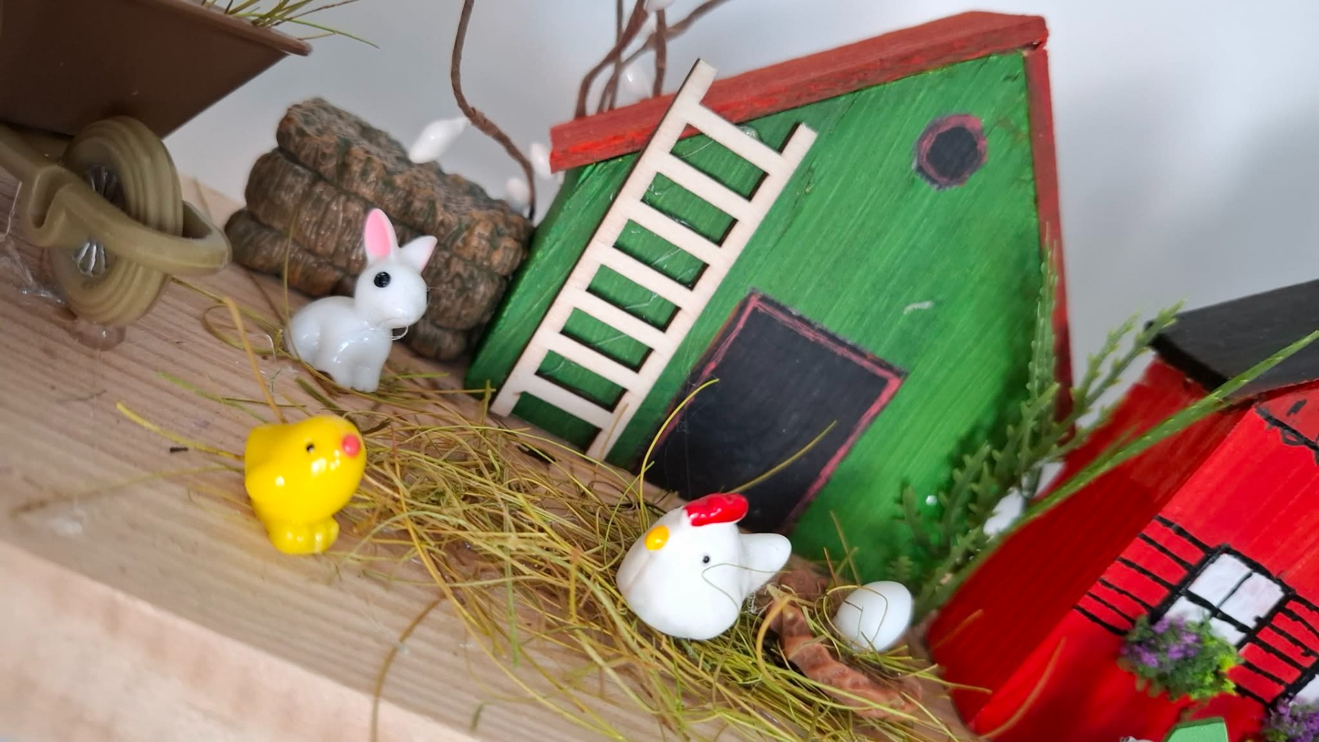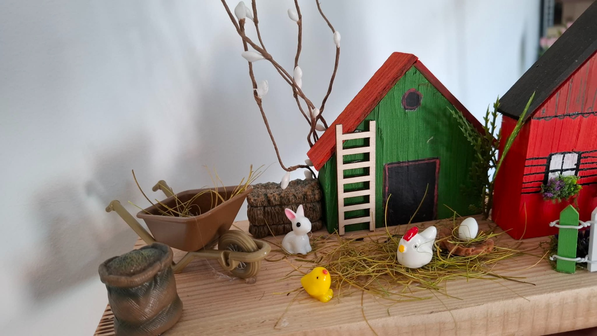 Tahle jedinečná jarní dekorace vnese do vašeho domova klid, pohodu a kouzlo venkova. Každý detail je tvořený s láskou – domečky, zahrádka i drobné postavičky vytváří krásný příběh.